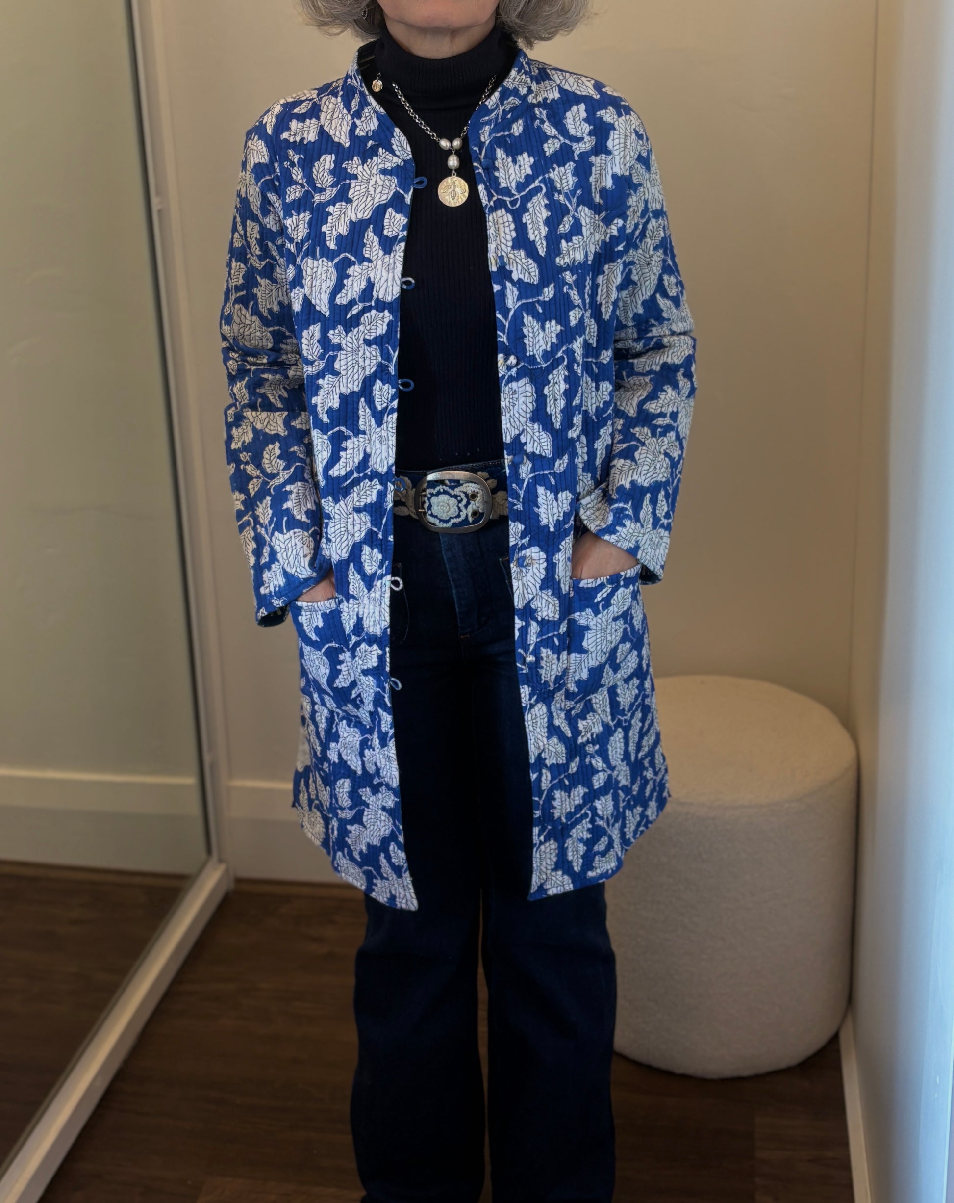 The Capri quilted reversible jacket is a timeless blend of elegance and practicality. Crafted from 100% breathable cotton, this lightweight layer offers warmth without compromising on style. Designed for versatility, its reversible feature allows you to switch up your look effortlessly, making it perfect for both casual and formal occasions. Handcrafted with precision, The Capri embodies sophistication, comfort, and quality in every stitch.