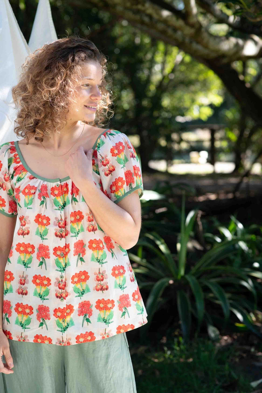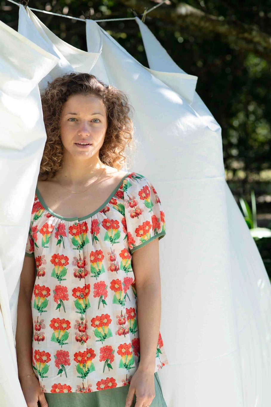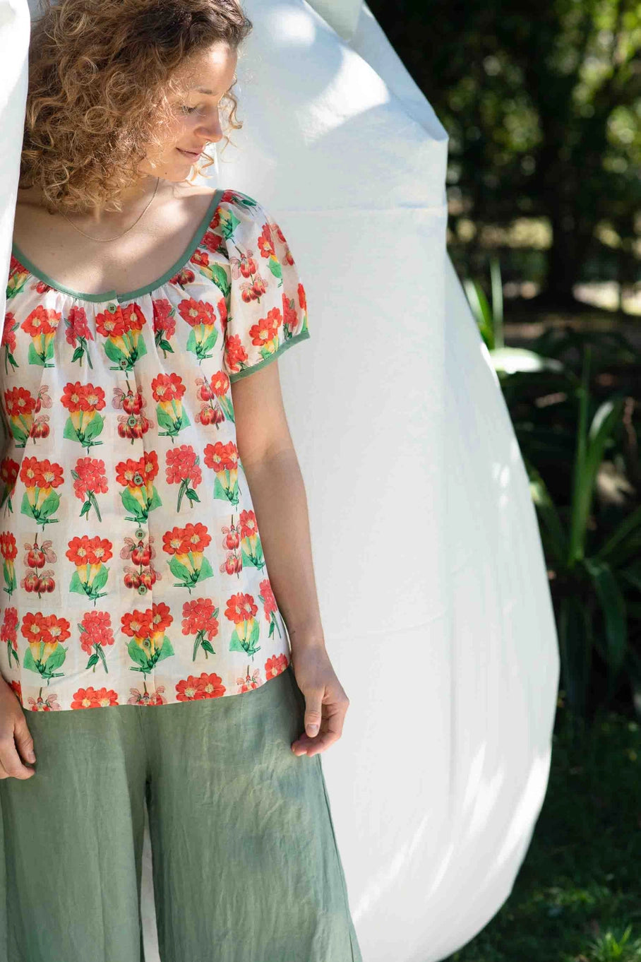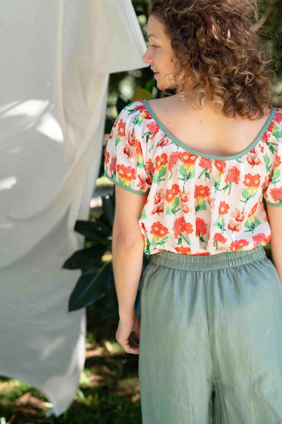 Helene wears size small and is worn with Ollie linen pant in Mineral Green.
