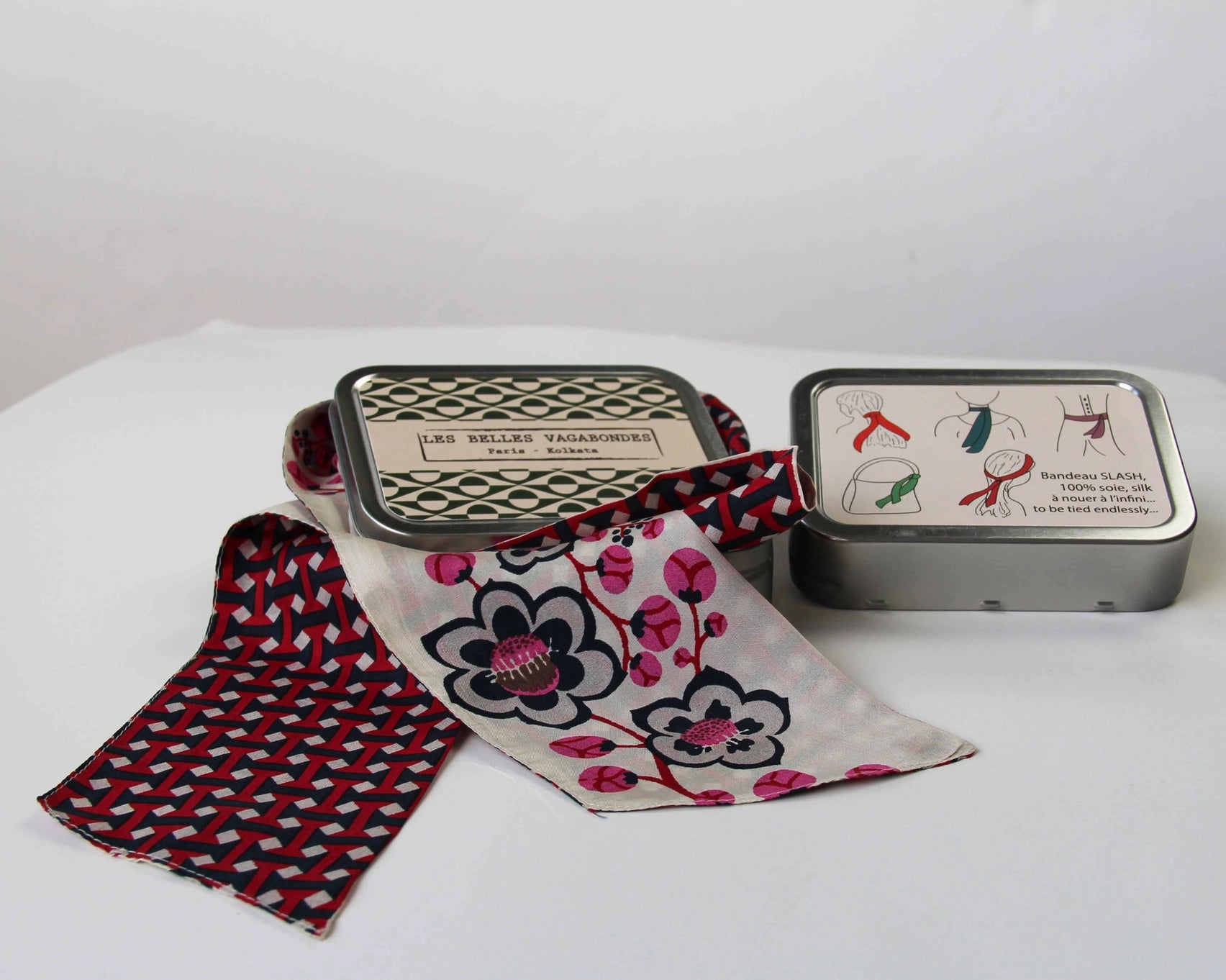 Our headbands are made of silk, they are an essential fashion accessory to complete your outfits with a touch of color and originality. They can be worn as a bun or a headband/as a lavallier/as a belt/around the neck/around the wrist/on a hat/on a bag... Sold in an iron box with a clean and reusable design, Slash headbands make an unusual gift.