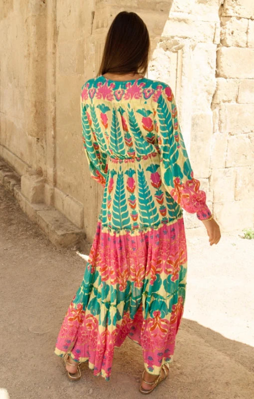 The “Ipanema Aqua” sleeved dress combines elegance and freshness in a vibrant aqua tone. With a flowing design and loose sleeves, this dress is ideal for daytime events or special nights.