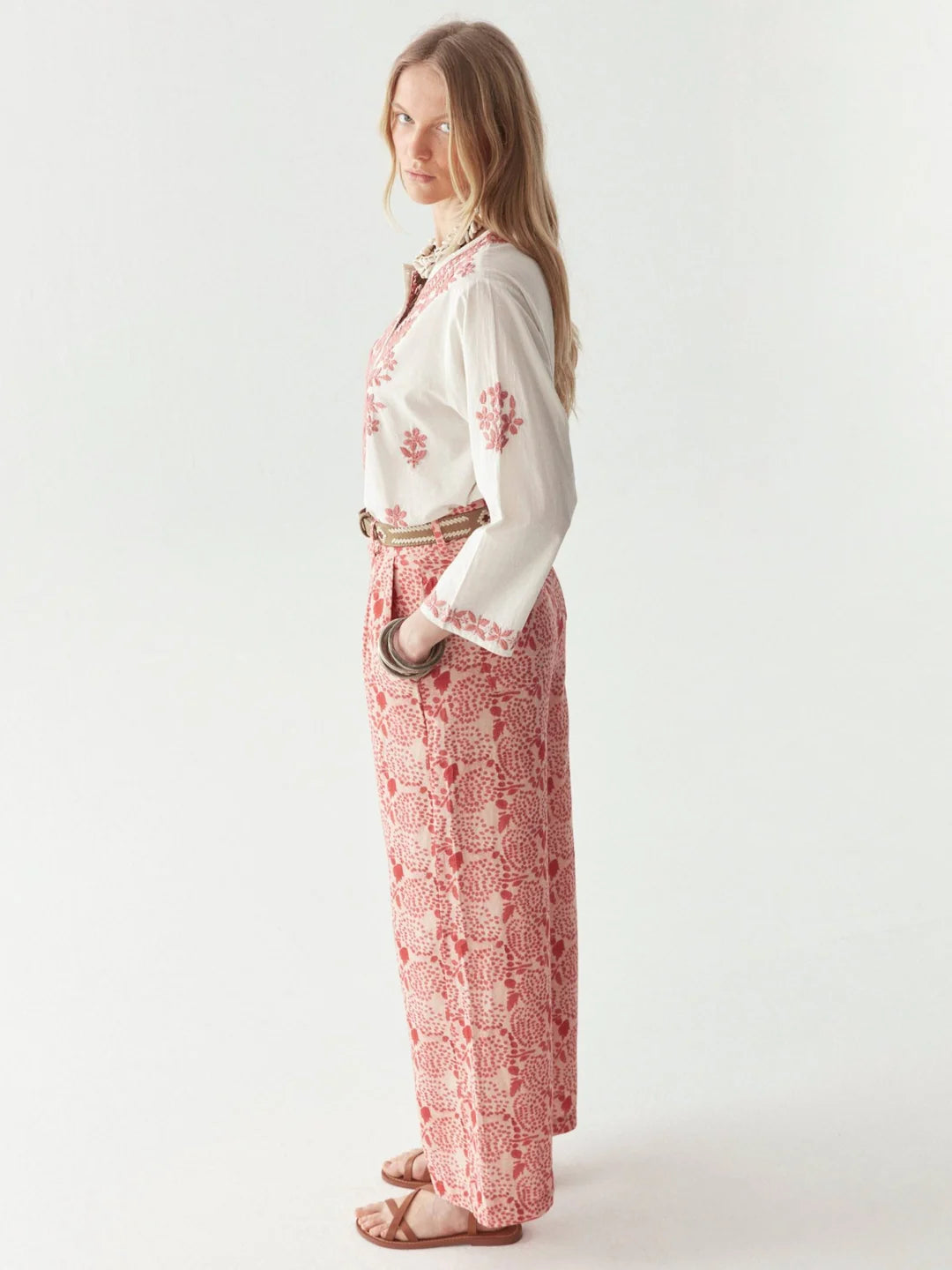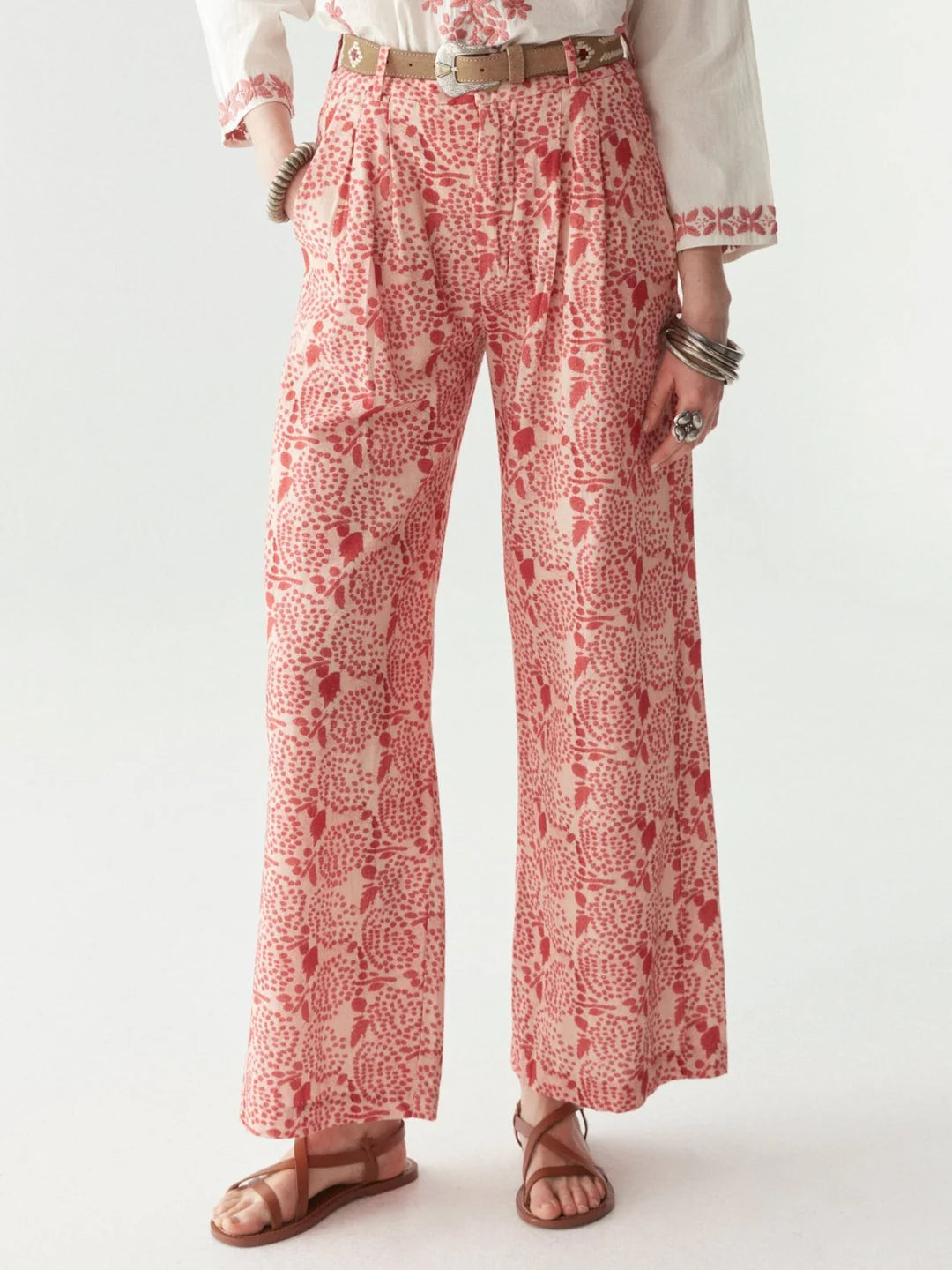 These pants are no mere garment. High-waisted and loose, our Lolo Pants hang as though untouched by the rules of fit and form. The front pleats, sharp as a well-aimed quill, slice through the fabric with intent, leaving their mark as a declaration of purpose, while the side pockets, deep and mysterious, serve as hidden chambers for the most precious secrets.