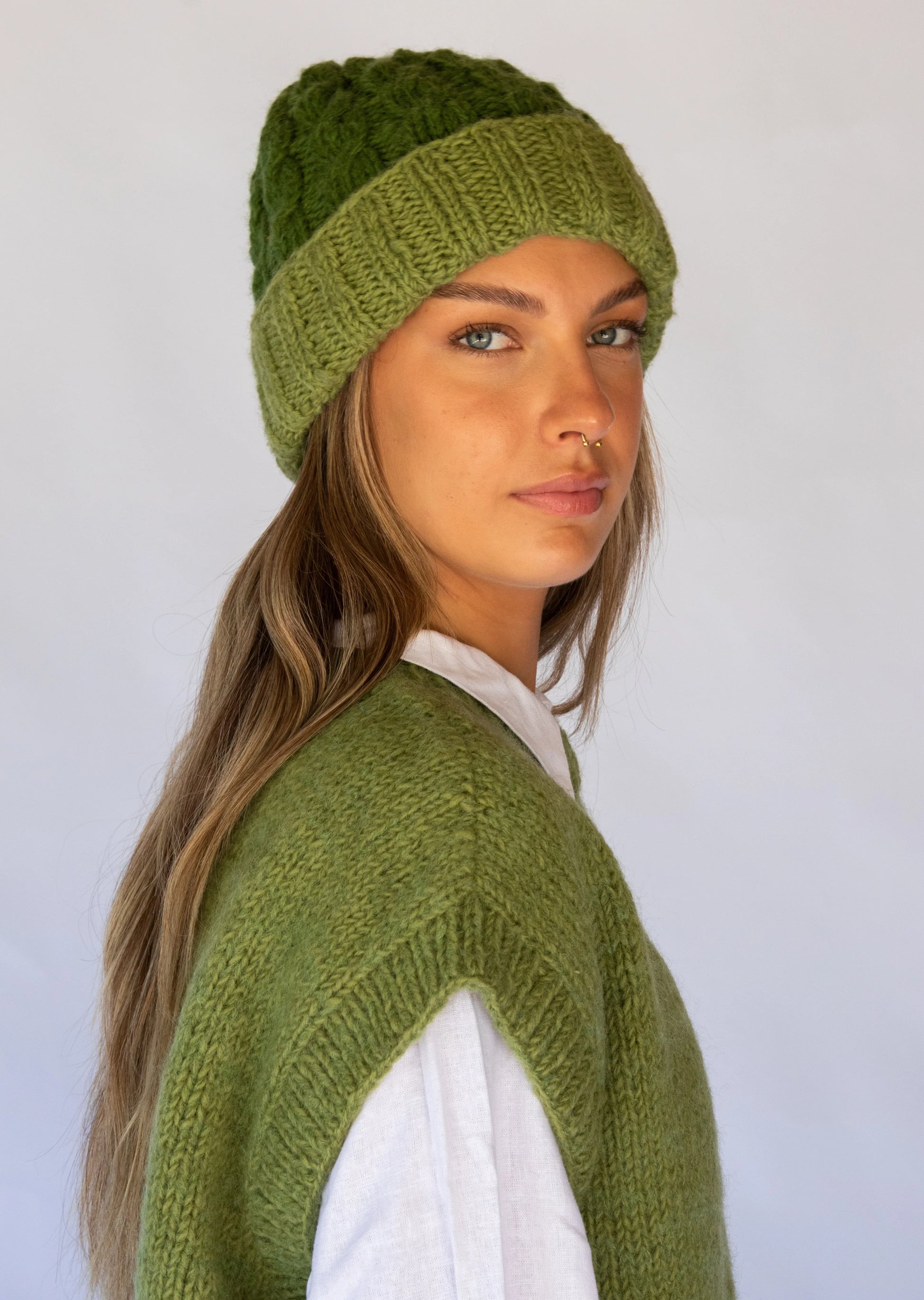 Introducing the Val Contrast Beanie: blending classic charm with contemporary warmth, this beanie is a winter wardrobe essential. With its cable knit crown/body in one colour and ribbed folded brim in another, it adds a playful touch to your look while keeping you snug in colder weather.